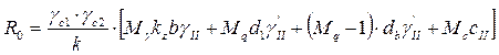 При расчете деформаций основания с использованием расчетных схем, среднее давление под подошвой фундамента Р не должно превышать расчетного сопротивления грунта основания R , кПа (тс/м 2 ), определяемого по формуле: