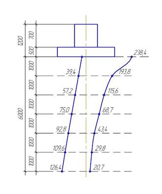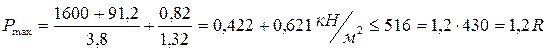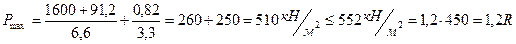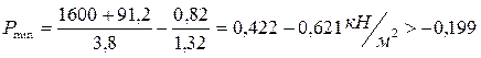 Так как P min отрицательное значение, то подбираем размер фундамента большей площади чтобы исключить выворачивание фундамента из-за приложенного момента