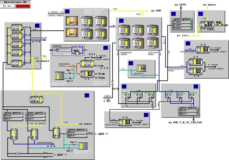 o и перекачки нефти, сигнализацию выхода этих параметров за пределы нормы, управление технологическими регуляторами по стандартным законам, защиту (останов) насосов при возникновении аварийных ситуаций;