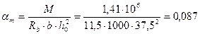 Определяем площадь продольной арматуры Аs . Момент в опорном сечении, взятый с коэффициентом 1,25, равен: