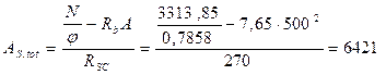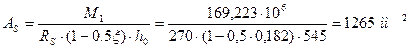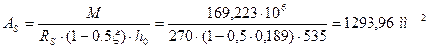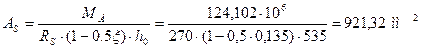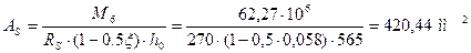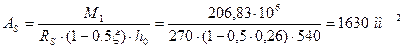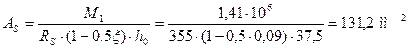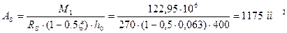 Площадь сечения арматуры будет равна: