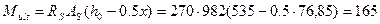 М=1,25×Q×a=1,25×382,082×0,18 = 85,968 кНм .