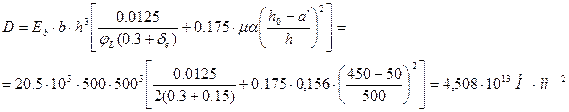 Для тяжелого бетона класса В15 имеем расчетное сопротивление бетона Rb = 0,9×8,5 = 7,65 МПа , модуль упругости бетона Е b = 20500 МПа .
