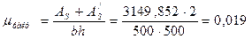 Принимаем 2ø12А300 Аs = 628 мм2 (+0,3%)