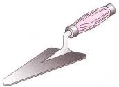 Кельма - це лопатка зі сталевого тонколистового полотна з зігнутою ручкою. Ручка вироблена з деревини твердих порід. Кельму застосовують для розрівнювання розчину, заповнення вертикальних швів і підрізання надлишків розчину. (1.).