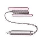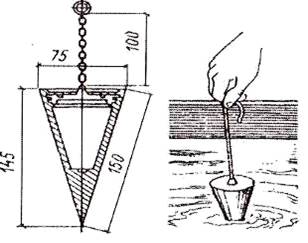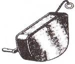 Висок. Маса - 0,4-1 кг. Складається з конусоподібного корпуса, крученого шнура й алюмінієвої планки. Призначений для перевірки вертикальності кутів і поверхні мурування. (6.)