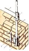 Причальні скоби. Подібної форми. Закріплюють їх у швах мурування. Скоби виготовляють з листової сталі, надівають на цеглину, покладену горизонтально.