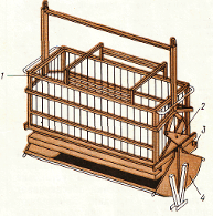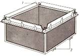Бак для змочування цегли. Ємність, яку заповнюють водою. У жарку і суху погоду піддони з цеглою опускають у бак, змочують і подають на робоче місце. (15.)