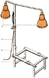 Переносні світильники. Мають вигляд розсувної рами з телескопічним стояком з плафонами. Призначені для освітлення робочого місця у темний час доби.