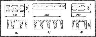 Стінові бетонні камені: суцільний (а), перегородковий (б),модульний (в)