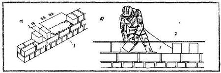 провідний муляр, рухаючись уздовж стіни, укладає зовнішню версту.