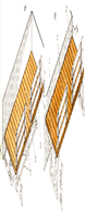 Ліси з об'ємних елементів складаються з вертикальних етажерок і панелей робочого настилу з огорожею. Всі елементи лісів вмонтовують і демонтують краном. Ліси такої конструкції застосовують для кладки стін одноповерхових виробничих будівель заввишки до 14,2 м.