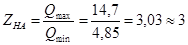 Число рабочих насосных агрегатов определяется как отношение максимального и минимального расходов из графика водопотребления.