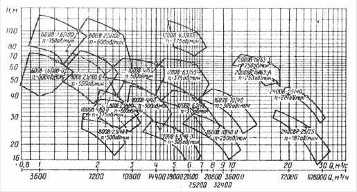 Рисунок 3.1. Сводный график рабочих полей насосов типа В