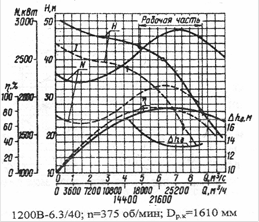 Рисунок 3.2. Рабочая характеристика насоса 1200В-6,3/40