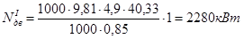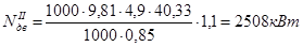 Требуемая мощность электродвигателя определяется по максимально возможной подаче насоса Qн =4,9 м3 /с, и соответствующему ей напору Нн =40,33 м.