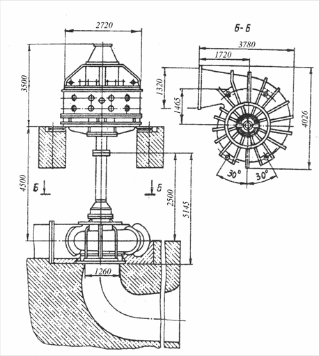 . Пролет верхнего строения или ширина машзала также округляется до стандартного значения В=15м. Длина верхнего строения также, как и насосного помещения принимается кратной 6м