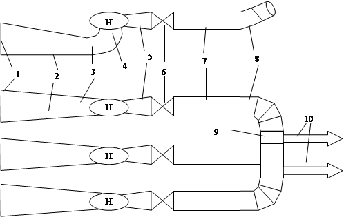 При использовании на насосной станции мощных (Q > 2 м3 /с) вертикальных центробежных насосов подвод воды к ним осуществляется с помощью изогнутых всасывающих труб с давлением в них всегда выше атмосферного. Они выполняются в монолитном железобетоне в зданиях блочного типа. Число всасывающих труб равно числу установленных насосных агрегатов.