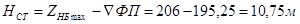 hн =2,75 - превышение оси рабочего колеса насоса над верхом фундаментной плиты;