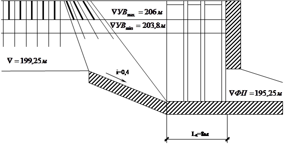 (7.6) - максимально возможный напор воды на конструкцию в расчетном сечении;