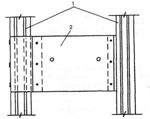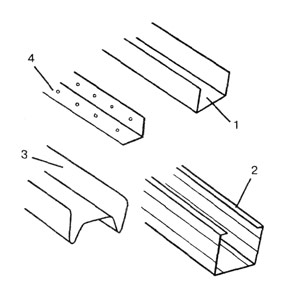 Рис. 32. Монтаж каркаса из ПН-профиля: 1 — ПП-профиль;