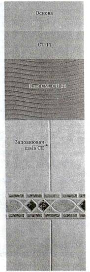 Суміші для заповнення швів між плитками при облицюванніє полімермінеральними системами, що містять мінеральні в'яжучі, наповнювачі та армувальні добавки, а також добавки, які підвищують адгезійні і деформаційні характеристики розчинів (модуль пружності), знижують усадку.