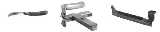 1)просте розкроювання за допомогою лінійки, метра, металевого трикутника і різання ГКП на столі з рівною поверхнею ножем для різання ГКП або за допомогою спеціальних пристосувань — різака малого (для відрізання смуг завширшки до 120 мм) або різака великого (для відрізання смуг більшої ширини, до 630 мм) рис. 3.7;