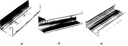 Профілі "Кнауф" випускають з U-подібним і С-подібним перерізами. У більшості випадків жорстіксть С-подібних профілів збільшують гофруванням їхньої поверхні під час холодної прокатки. Основні види металевих профілів: профіль напрямний (UW), U-подібний (рис. 4.2, а); профіль стояковий (CW), С-подібний (рис. 4.2, б); профіль стельовий (CD), профіль кутовий (LW) (рис. 4.3, в).