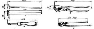 а - молотки плит очника; б - розвертка; в - кусачки; г - кліщі