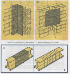 Перед штукатуренням металеві балки, що виступають, до встановлення на місце також повинні бути обмотані сіткою (В) або дротом (Г).