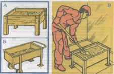 Спосіб приготування вапняного розчину. У посудині розбавляють водою вапно до утворення вапняного молока. Потрібну кількість піску насипають в ящик, добавляють вапняного молока і добре перемішують (В).