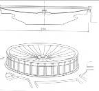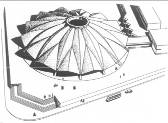 На рис. 11 дано изображение покрытия Даниловского рынка в Москве, напоминающее цветок из четырнадцати переплетающихся лепестков. Общая форма оболочки близка к складчатому сферическому сегменту. Складчатая форма покрытия, каждый элемент которой – кривая поверхность переменной положительной кривизны, придают покрытию большую пространственную жёсткость. При диаметре сооружения больше 70 м толщина оболочки составляет 3 –4 см .