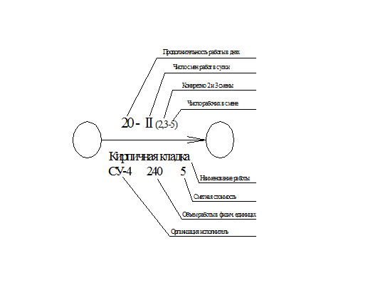 На сетевом графике работа изображается одной большой стрелкой, длина которой не связана с продолжительностью работы, если график составлен не в масштабе времени.