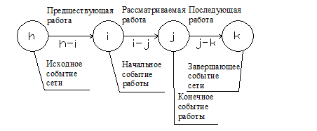 События - это промежуточный или окончательный результат одной или нескольких работ. События изображаются кружками или др. геометрическими фигурами, внутри которой указывается определенный номер - код события . Общая схема кодирования работ и события сетевого графика может быть представлена в следующем виде.