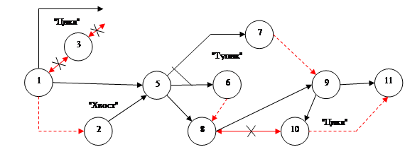 2.1.7 При построении сетевых графиков возможны следующие ошибки: тупики, хвосты и циклы