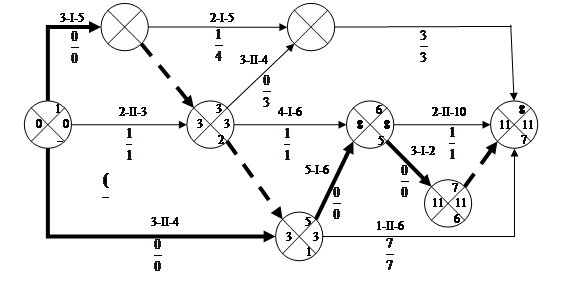 Работы, не имеющие резервов времени, т.е. полный и свободный резервы работ, лежат на критическом пути.