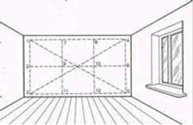 При провешивании стены первый гвоздь забивают в верхней ее части на расстоянии 20...25 см от угла стены и от потолка на глубину, при которой шляпка гвоздя выступает на поверхности, равной принятой толщине штукатурки - от 5 до 30 мм в зависимости от материала и качества поверхности стены. К шляпке гвоздя прикладывают (или привязывают) отвес, по которому забивают второй гвоздь на расстоянии 25 см от пола таким образом, чтобы шляпка касалась шнура. Аналогично провешивают противоположную сторону этой стены. Если высота помещения более 3 м, то при провешивании забивают промежуточные гвозди в соответствии с отвесом.