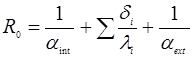 - термическое сопротивление теплоотдачи, (м2·°С)/Вт;
