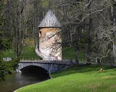 Павловский дворцово-парковый ансамбль расположен в 27 км на юг от Санкт-Петербурга. В XIII веке здесь находилась небольшая новгородская крепость, в годы шведского владычества - укрепление, от которого сохранились остатки земляных валов. В 1777 году Екатерина подарила эти земли великому князю Павлу Петровичу для устройства летней резиденции наследника престола. Создание Павловского парка и его скульптурного убранства началось в 1780 году. Главной творческой фигурой в формировании Павловского ансамбля более двадцати лет являлся Чарльз Камерон. По его проекту в 1782 - 1786 гг. возвели дворец, в период с 1782 до 1807 года построили павильоны, Колоннаду Аполлона, Большой каскад, установили колонну "Конец света". По чертежам Ч. Камерона парк украсили мостами - Кентавров, Горбатым, Черным.