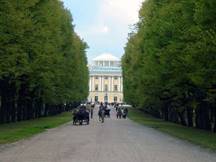 Перед тройной липовой аллеей, ведущей от дворца, раскинуто так называемое "Парадное место", устроенное после смерти императора Павла. При императоре оно было отделено от аллеи решеткой и занято широкой песчаной площадкой, от которой по лугу расходились радиусами аллеи.