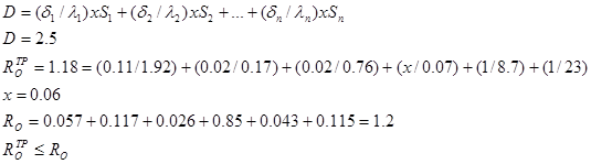 Сопротивление теплопередаче ограждающей конструкции определяется по формуле: