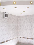 Кроме того, на рынке имеются и совершенно необычные по оформлению модули. Скажем, фирма SIRO BURG поставляет зеркальные панели из полистирола, покрытые тонкой пленкой различных оттенков (например, Silver, Brass). Они характеризуются 100%-й влагостойкостью и могут использоваться даже в ванной комнате (хотя прямой контакт с водой все же не рекомендуется). Температура в помещении с таким потолком не должна превышать 60°С, а подбор и монтаж светильников нужно производить особенно тщательно, поскольку полистирол горюч. Декоративные панели Galaxie этой же фирмы снабжены голографическими изображениями на зеркальном фоне. Поверхность некоторых древесно-волоконных модулей серии Fibracoustic фирмы AMF, по утверждению монтажников из ООО "МИАЛ-С", меняет оттенок основного цвета (переливается) в зависимости от направления взгляда.
