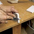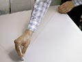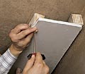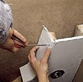 Более легкий и чаще применяемый способ - использование в качестве "боковушки" листа оргалита (мягкий ДВП толщиной приблизительно 4 мм). Он легко изгибается и крепится, а также прост в обработке. Изогнув полоску, подогнанную по размерам, закрепите ее так, чтобы нижний край совпадал с нижней плоскостью подвесного потолка. Получившийся короб обработайте наждачной бумагой, чтобы его края стали более ровными и гладкими.