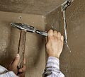 По сделанным меткам просверлите в потолке и стенах отверстия на глубину приблизительно 40 мм и вставьте деревянные или пластмассовые дюбели.