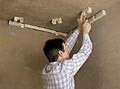 С помощью молотка и зубила проделайте в стене штроб, в который уложите электрический кабель. Заделайте штроб цементным раствором.