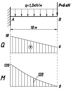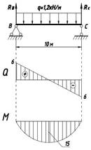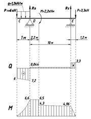 Определяем реакции опор и строим эпюры моментов М и поперечных сил Q.