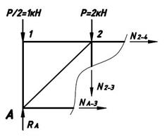 Проводим сечение и рассматриваем равновесие левой части, за моментную точку принимаем точку 2.