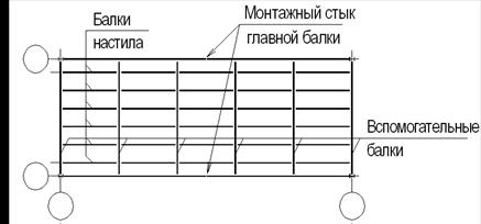 Балочная клетка представляет собой систему пересекающихся несущих балок, предназначенных для опирания настила перекрытий. В зависимости от схемы расположения балок балочные клетки подразделяются на 3 типа: упрощенные, нормальные и усложненные. В упрощенной балочной клетке нагрузка от настила передается непосредственно на балки, располагаемые параллельно короткой стороне перекрытия, затем на вертикальные несущие конструкции (стены, стойки). В балочной клетке нормального типа балки настила опираются на главные балки, а те на колонны или другие конструкции. В усложненной балочной клетке балки настила опираются на вспомогательные, которые крепятся к главным балкам.