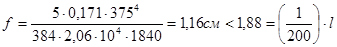 Проверяем только прогиб балки, т. к. W = 184 см3 > Wтр = 145 см3 .