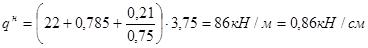 qн = (22 + 0,785)·0,750 = 17,1 кН/м = 0,171 кН/см.
